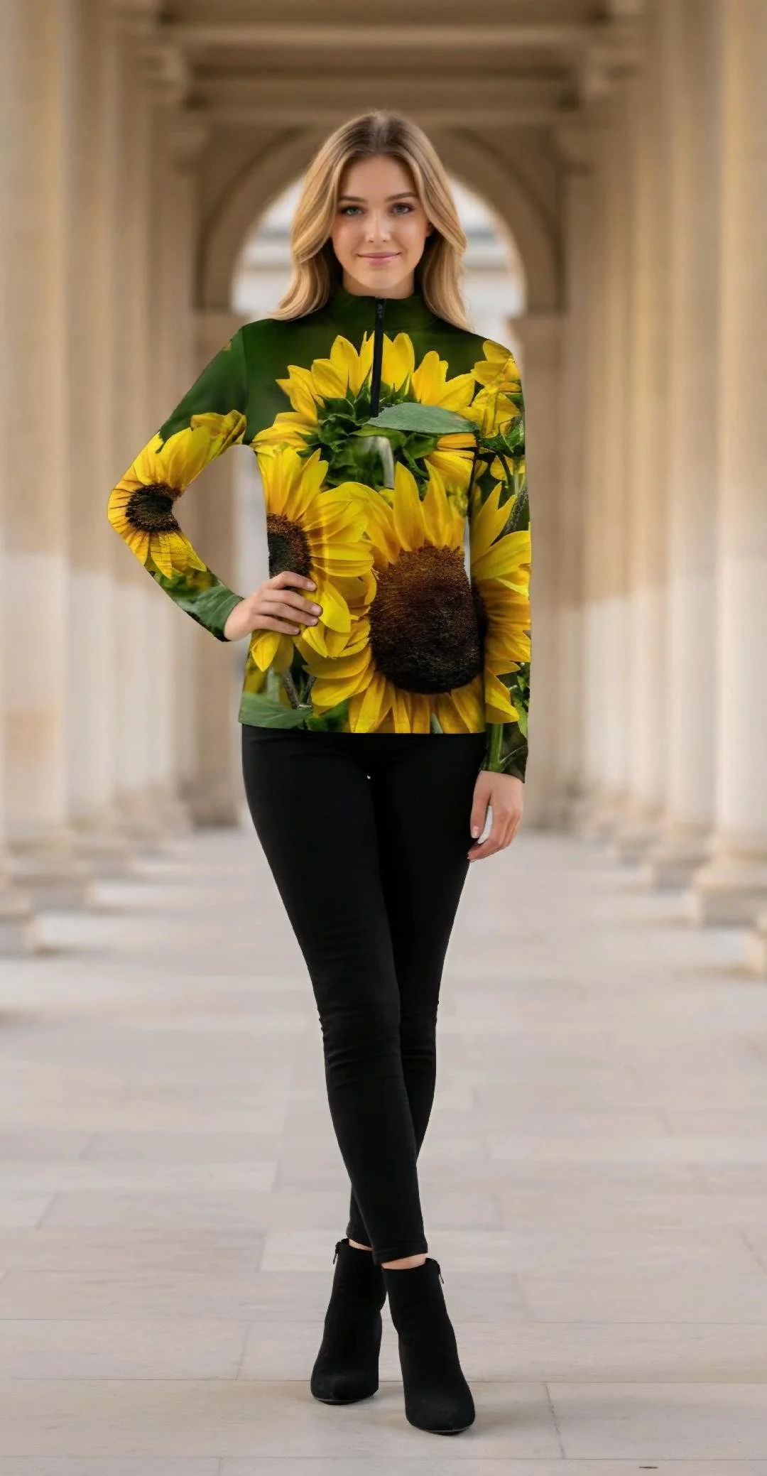 Long Sleeve Top with Half Zipper - Daisies in the Dark